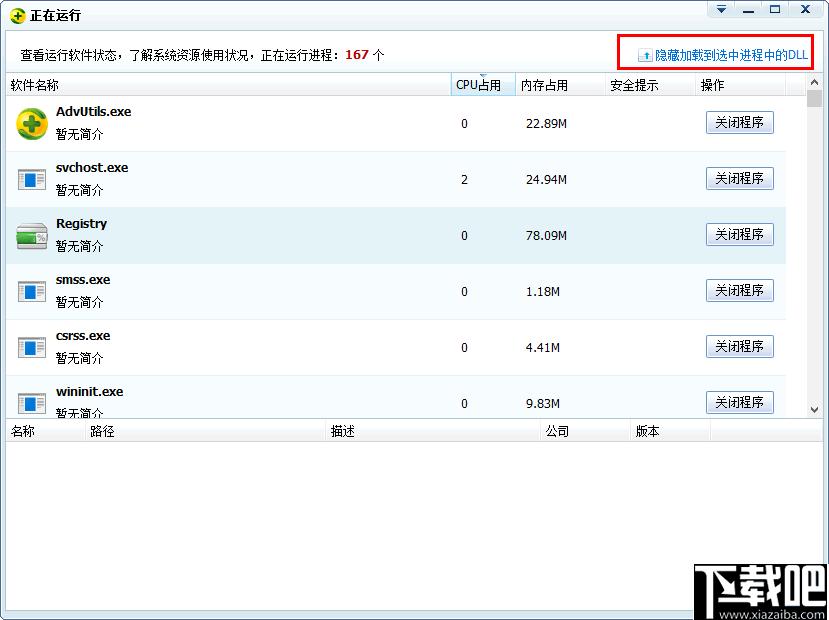 1、通过这款工具您可以查看到所有在计算机中运行的软件。